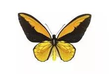 金裳凤蝶是凤蝶科、裳凤蝶属的动物。金裳凤蝶身体呈黑色,头、颈和胸侧有红毛,腹部有黑黄两色相间条纹,雄蝶前翅黑色,具黑天鹅绒光泽,各脉两侧灰白色,后翅金黄色,各室外缘有等腰三角形黑斑1枚,斑内侧有晕,…全部>>