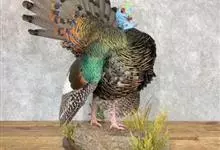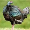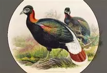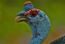 眼斑吐绶鸡:是火鸡科的两种鸟类之一。体型比普通火鸡略小些,体长1米左右,体重2.4-5.4千克,雄性比雌性略大,长得很特别,蓝色的秃脑袋上冒出几个橙黄色的疙瘩。但是它羽色艳丽,身体呈铜色及绿色。…全部>>
