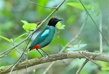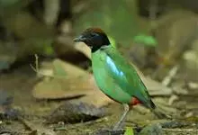 绿胸八色鸫:是雀形目八色鸫科的鸟类,共有12个亚种。体长为16-18厘米,体重65-69克。体型圆胖,尾短,腿长。头黑,上体绿色,两翼深色而具白色斑纹,头顶至后枕深褐,胸及腹部苹果绿,臀亮红。…全部>>