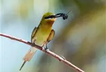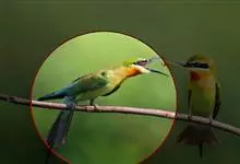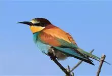 蓝颊蜂虎:是蜂虎科、蜂虎属的鸟类,共有2个亚种。体长27-33厘米,翼展46-49厘米,体重38-50克。嘴形细长而下弯,先端尖,…全部>>