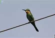 栗喉蜂虎是蜂虎科蜂虎属的鸟类。有热带鸟类羽毛艳丽的特征:喉部是栗红色的,黑色的过眼纹,翅膀和背部是绿色的,尾翼是蓝色的,飞行时翅膀下面的羽毛是橙黄色的,在阳光的照射下,它们全身闪烁着金属般的艳丽光泽,…全部>>