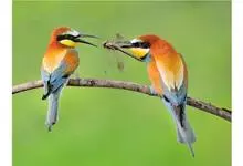 蓝颊蜂虎:是蜂虎科、蜂虎属的鸟类,共有2个亚种。体长27-33厘米,翼展46-49厘米,体重38-50克。嘴形细长而下弯,先端尖,…全部>>
