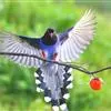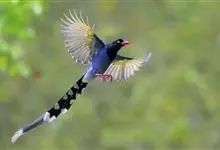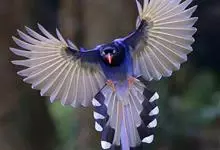 台湾蓝鹊:体长64至65厘米,翼展18至21厘米,尾长约40厘米,尾羽长占了总体长的三分之二。头、脸、颈、喉、胸都是黑色,黄色的眼珠包围黑色的瞳孔,鲜红色的鸟喙、双脚,…全部>>