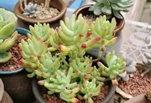 乙女心是景天科景天属的多肉植物,原产墨西哥。多年生亚灌木,茎叶肉质,株高5-30厘米。叶片簇生于茎顶,圆柱状,淡绿色或淡灰蓝色,叶先端具红色,叶长3~4厘米。花小,黄色。春秋为生长季,…全部>>