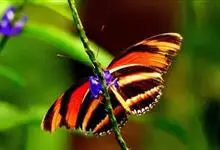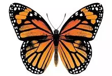 黑脉金斑蝶:翅阔8.6-12.4厘米。雄蝶较雌蝶为大。成年蝶颜色鲜艳,翅膀上有显眼的橙色及黑色斑纹,周围是宽阔的黑色边框,布有许多白色斑点。这种引人注目的着色是对捕食者的视觉警告,表示这个物种有毒;…全部>>