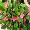铁海棠为大戟科大戟属蔓生灌木植物;茎多分枝,具纵棱,呈旋转状;叶互生,通常集中于嫩枝上;每个花序基部边缘具微小的红色尖头;苞叶先端圆且具小尖头,无柄,上面鲜红色,下面淡红色;苞片丝状;子房光滑无毛,…全部>>