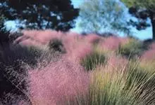 粉黛乱子草:是禾本目、禾本科、乱子草属植物。多年生暖季型草本,株高可达30-90厘米,宽可达60-90厘米。顶端呈拱形,绿色叶片纤细。顶生云雾状粉色花絮,花期9-11月,…全部>>