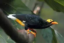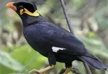 金冠树八哥为椋鸟科树八哥属的鸟类。体长约23厘米,闪辉黑色。特征为具翼斑及颏黄色,脸颊裸露皮肤粉黄色。分布于印度、缅甸、泰国以及中国大陆的云南、广东等地。…全部>>