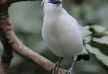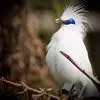 长冠八哥:是一种大型椋鸟,体长约25厘米,雌雄相似,外形俊朗,羽冠发达,眼睛四周和面部裸出,裸露部分为蓝色,全身羽毛纯白色,尾部和翼端的边缘呈黑色,脚灰色。全身白色,具较长冠羽,…全部>>