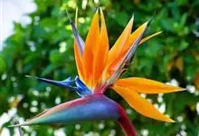 鹤望兰,别名天堂鸟,为鹤望兰科鹤望兰属的一种多年生草本植物;无木质树干;花序生于与叶柄近等长或稍短的花序梗上,佛焰苞1;花较小,萼片橙黄色,长7.5-10厘米,箭头状花瓣基部具耳状裂片,…全部>>
