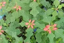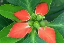 猩猩草:常绿或半常绿灌木,盆栽时株高0.5米-2米,在亚热带地区可长到6米以上。茎直立而光滑,单叶互生,卵状椭圆形至阔披针形,具不规则的深缺刻。长10-15厘米。花小,有蜜腺,排列成密集的伞房花序。…全部>>