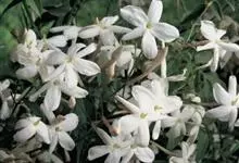素馨花,木犀科素馨属多年生的攀援灌木植物。攀援灌木,小枝圆柱形,具棱或沟;叶对生,叶轴常具窄翼,小叶片卵形或长卵形;聚伞花序顶生或腋生,花序梗长,苞片线形,花萼无毛,裂片锥状线形,花冠白色,…全部>>