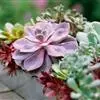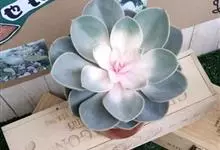 紫珍珠是景天科石莲花属的多年生肉质草本植物。植株中小型;叶片肉质,匙形,呈莲座状紧密排列;叶片粉紫色,叶缘呈粉白色,光照充足时颜色亮丽,不足时叶色会呈现深绿色或灰绿色,叶面光滑,被轻微白粉,…全部>>