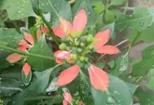 猩猩草:常绿或半常绿灌木,盆栽时株高0.5米-2米,在亚热带地区可长到6米以上。茎直立而光滑,单叶互生,卵状椭圆形至阔披针形,具不规则的深缺刻。长10-15厘米。花小,有蜜腺,排列成密集的伞房花序。…全部>>