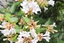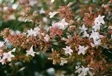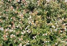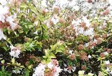 大花六道木,忍冬科六道木属半常绿矮生灌木。其幼枝为红褐色,有短柔毛;叶片倒卵形为墨绿色,有光泽;花粉钟形为白色;圆锥花序,开花繁茂;花期长,5~11月持续开花。…全部>>