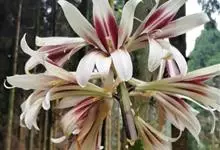 云南大百合Cardiocridum giganteum株高1~2米;地下部基生叶的叶柄基部膨大形成鳞茎,开花后凋萎;在老鳞茎基部每年可形成数个小鳞茎。花茎高大,直径达3~4厘米,中空,无毛。云南大百…全部>>