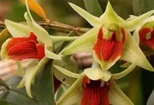 束花石斛是兰科石斛属植物。茎粗厚,肉质,下垂或弯垂,圆柱形,不分枝,具多节。叶二列,互生于整个茎上,纸质,长圆状披针形。伞状花序近无花序柄,每2-6花为一束,侧生于具叶的茎上部;花黄色,…全部>>