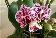 蝴蝶兰又名蝶兰,素有“兰花皇后”的美称。兰科蝴蝶兰属多年生草本植物,茎很短,常被叶鞘所包;叶片稍肉质,上面是绿色,而背面是紫色,呈椭圆形或长圆形,且先端锐尖或钝,具有短而宽的鞘;花色为白色,…全部>>