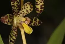 湿唇兰 Pfitz.):茎粗壮,长被宿存的叶鞘所包,上部具3-5枚叶。叶长圆形或倒卵状长圆形。花序1-6个,长达35厘米;疏生5-8朵花;花大,稍肉质,萼片和花瓣黄色带暗紫色斑点;萼片近相似,…全部>>