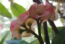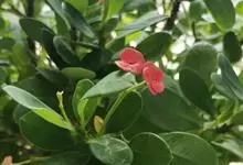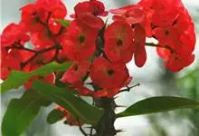 铁海棠为大戟科大戟属蔓生灌木植物;茎多分枝,具纵棱,呈旋转状;叶互生,通常集中于嫩枝上;每个花序基部边缘具微小的红色尖头;苞叶先端圆且具小尖头,无柄,上面鲜红色,下面淡红色;苞片丝状;子房光滑无毛,…全部>>