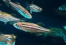 斑马鱼是鲤形目鲤科短担尼鱼属的鱼类,又名蓝条鱼、花条鱼、斑马担尼鱼。体呈纺锤形。背部橄榄色,体侧从鳃盖后直伸到尾末有数条银蓝色纵纹,臀鳍部也有与体色相似的纵纹,尾鳍长而呈叉形。雄鱼柠檬色纵纹,…全部>>