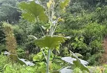 博落回 R. Br.)是罂粟科博落回属直立草本,高可达4米。茎光滑绿色;叶片宽卵形或近圆形,背面多白粉,常呈淡红色;大型圆锥花序多花,顶生和腋生,花芽棒状,萼片倒卵状长圆形;子房倒卵形至狭倒卵形,…全部>>