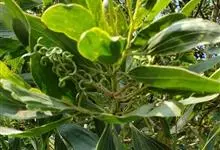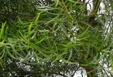 大叶相思是豆科,相思树属常绿乔木,枝条下垂,树皮平滑,灰白色;叶片镰状长圆形,两端渐狭,穗状花序,簇生于叶腋或枝顶;花橙黄色;花萼顶端浅齿裂;花瓣长圆形,荚果成熟时旋卷,果瓣木质,种子黑色,…全部>>