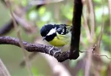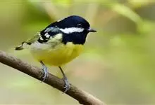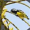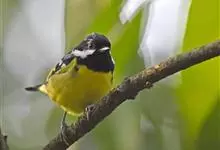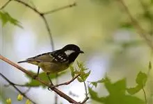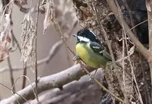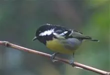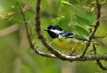 黄腹山雀是雀形目山雀科山雀属鸟类。虹膜褐色或暗褐色;嘴蓝黑色或灰蓝黑色;头、喉胸斑黑色,颊斑、颈后斑白色;上体蓝灰色,腰银白色;翼具两排白色点斑;下胸、腹鲜黄色;尾黑色,…全部>>