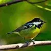 火冠雀又名火帽雀,是雀形目山雀科火冠雀属小型鸟类。体长约10厘米,雄鸟繁殖期前额鲜红色,头等及耳羽暗黄色,眉纹色浅不显著;喉部橙红色,逐渐过渡至胸部的鲜黄色;背部黄绿色,小翼羽黑色,…全部>>
