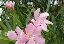 夹竹桃,又名红花夹竹桃、欧洲夹竹桃,是夹竹桃科夹竹桃属的一种常绿直立大灌木,枝条灰绿色,含水液。叶披针形,3叶轮生。聚伞花序顶生,花冠粉红至深红色,花冠漏斗状,有特殊香味。蓇葖果,圆柱形。种子长圆形,…全部>>