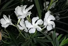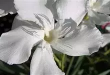白花夹竹桃是夹竹桃科、夹竹桃属植物夹竹桃的栽培品种。常绿直立大灌木,枝条灰绿色;嫩枝条具稜,被微毛,老时毛脱落。叶3-4枚轮生,下枝为对生,叶面深绿,叶背浅绿色;侧脉纤细平行与中脉成直角;叶柄扁平,…全部>>
