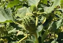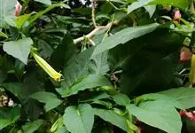 曼陀罗,茄科曼陀罗属一年生大型草本植物,全株光滑。有臭气;叶呈广卯形,边缘具不规则波状浅齿裂;花单生于枝杖间或叶腋,直立,有短梗;花萼是筒状裂片三角形,颜色为白色或淡紫色;果实为蒴果卵状,…全部>>