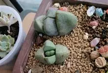 帝玉是番杏科、对叶花属多肉多年生草本多浆植物。植株矮小。植株无茎,叶极肉质,交互对生,对生叶卵圆形,基部合生,在生长期上部拉开很大一段距离,似元宝状,而到了休眠期老叶逐渐干枯萎缩,仅剩中间的一对叶,…全部>>