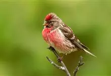 红额金翅雀:共有14个亚种。小型鸟类,体长12-14厘米。额、脸颊和颏朱红色,眼先和眼周黑色,在淡色的头部极为醒目。上体灰褐或乌褐色,尾上覆羽白色,两翅和尾黑色,翅上有黄色斑。下体喉、胸灰褐或乌褐色…全部>>
