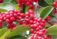 构骨叶冬青学名枸骨,又名猫儿刺、老虎刺、八角刺、鸟不宿、构骨、狗骨刺、猫儿香和老鼠树。常绿灌木或小乔木,高1-3米,二年枝褐色,三年生枝灰白色,叶片厚革质,花淡黄色,果球形,直径8-10毫米,成熟时…全部>>