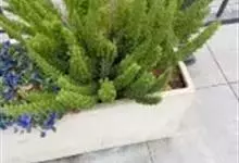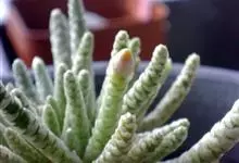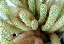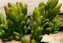 筒叶花月,是景天科青锁龙属的多年生草本植物。植株多分株,灌木状,茎较粗壮,圆柱形,表皮灰褐色;叶片肉质,互生,呈圆筒状,簇生于茎或分枝顶端,叶端呈斜截形,截面为椭圆形;花呈星状,淡白色;花期秋季。…全部>>