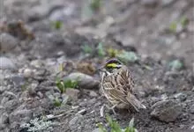 黄眉鹀是雀形目鹀科鹀属鸟类,体型中等偏小。雄鸟头部主要为黑色,冠纹白色,眉纹前段黄色而后段白色,喉白而具黑色细碎纵纹;上体主要为栗褐色,背具黑褐色纵纹;翼主要为黑褐色,…全部>>