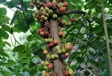 大果榕是桑科榕属的小乔木,株高可达10米;幼枝被柔毛;叶互生,宽卵状心形或近圆形;雄花无梗、匙形、花丝长,雌花生于雌株榕果内,子房白色;榕果簇生于树干基部或老茎短枝上、扁球形或陀螺形,…全部>>