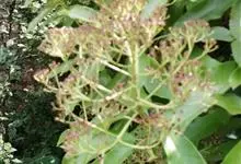 石楠 Kalkman),是蔷薇科石楠属的常绿乔木,高5~12米,株型紧凑,树冠圆球形。树枝为褐灰色;鳞片为褐色,没有毛;叶片革质,长椭圆至侧卵状椭圆形,有锯齿,新叶红色光亮。复伞房花序,白色小花,…全部>>