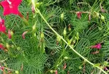 茑萝是旋花科番薯属属一年生柔弱缠绕草本植物。叶卵形或长圆形,羽状深裂至中脉,基部常具假托叶;花序腋生,由少数花组成聚伞花序,花直立,花柄较花萼长,在果时增厚成棒状;萼片绿色,椭圆形至长圆状匙形,…全部>>