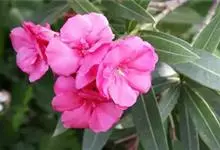 夹竹桃,又名红花夹竹桃、欧洲夹竹桃,是夹竹桃科夹竹桃属的一种常绿直立大灌木,枝条灰绿色,含水液。叶披针形,3叶轮生。聚伞花序顶生,花冠粉红至深红色,花冠漏斗状,有特殊香味。蓇葖果,圆柱形。种子长圆形,…全部>>