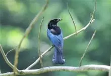 发冠卷尾是中型鸟类,体长28-35厘米。通体绒黑色缀蓝绿色金属光泽,额部具发丝状羽冠,外侧尾羽末端向上卷曲。栖息于海拔1500米以下的低山丘陵和山脚沟谷地带,多在常绿阔叶林、次生林或人工松林中活动。…全部>>
