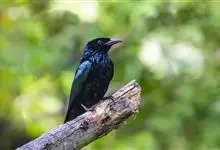 发冠卷尾是中型鸟类,体长28-35厘米。通体绒黑色缀蓝绿色金属光泽,额部具发丝状羽冠,外侧尾羽末端向上卷曲。栖息于海拔1500米以下的低山丘陵和山脚沟谷地带,多在常绿阔叶林、次生林或人工松林中活动。…全部>>