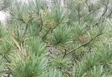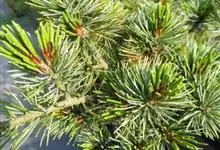 日本五针松,是松科松属常绿乔木。其树冠圆锥形;树皮灰黑色,不规则鳞片状剥裂;小枝密生淡黄色柔毛;叶蓝绿色,较短细,有白色气孔线,叶鞘早落;球果卵圆形或卵状椭圆形。花期5月中旬,果熟期翌年10月。…全部>>