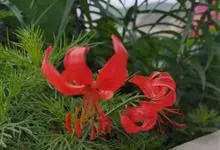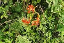 山丹是百合科百合属的多年生草本植物。鳞茎卵形或圆锥形,鳞片长圆形或长卵形,白色;叶散生茎中部,线形,边缘有乳头状突起;花单生或数朵成总状花序,花鲜红色,常无斑点,花被片反卷,…全部>>