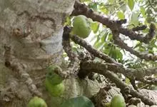 大果榕是桑科榕属的小乔木,株高可达10米;幼枝被柔毛;叶互生,宽卵状心形或近圆形;雄花无梗、匙形、花丝长,雌花生于雌株榕果内,子房白色;榕果簇生于树干基部或老茎短枝上、扁球形或陀螺形,…全部>>