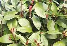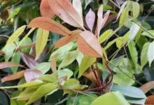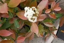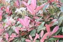 红叶石楠 是蔷薇科,石楠属杂交种,为常绿小乔木或灌木,乔木高可达5米、灌木高可达2米。叶片革质,长圆形至倒卵状、披针形,叶端渐尖,叶基楔形,叶缘有带腺的锯齿,花多而密,复伞房花序,花白色,梨果黄红色,…全部>>
