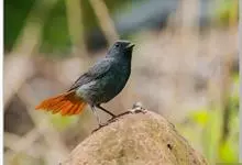 红尾水鸲是雀形目鹟科水鸲属鸟类,又称蓝石青儿、石燕、溪红尾鸲等。雄鸟主体均为暗灰蓝色,额基和眼先深灰黑色;翼暗褐色,外翈羽缘蓝灰色;虹膜褐色,喙黑色,脚肉褐色至黑褐色。雌鸟上体为略泛蓝的暗灰褐色,…全部>>
