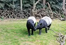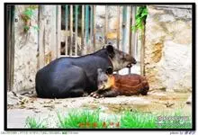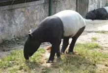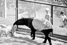 亚洲貘:亦称马来貘,是貘类中最大的一种,体长为1.8-2.5米,肩高90-120厘米,尾长5-10厘米,体重250-540千克。又叫五不像,它的鼻似象,耳似犀,尾似牛,足似虎,躯似熊,全身毛色黑白相…全部>>