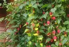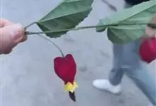 红萼苘麻是锦葵科、苘麻属常绿软木质灌木,叶绿色,长5-10厘米,心形,叶端尖,叶缘有钝锯齿,有时分裂,有细细的叶柄;叶互生,掌状叶脉;花单生于叶腋,具长梗,下垂;花萼红色,半套着大约4厘米长的花瓣,…全部>>
